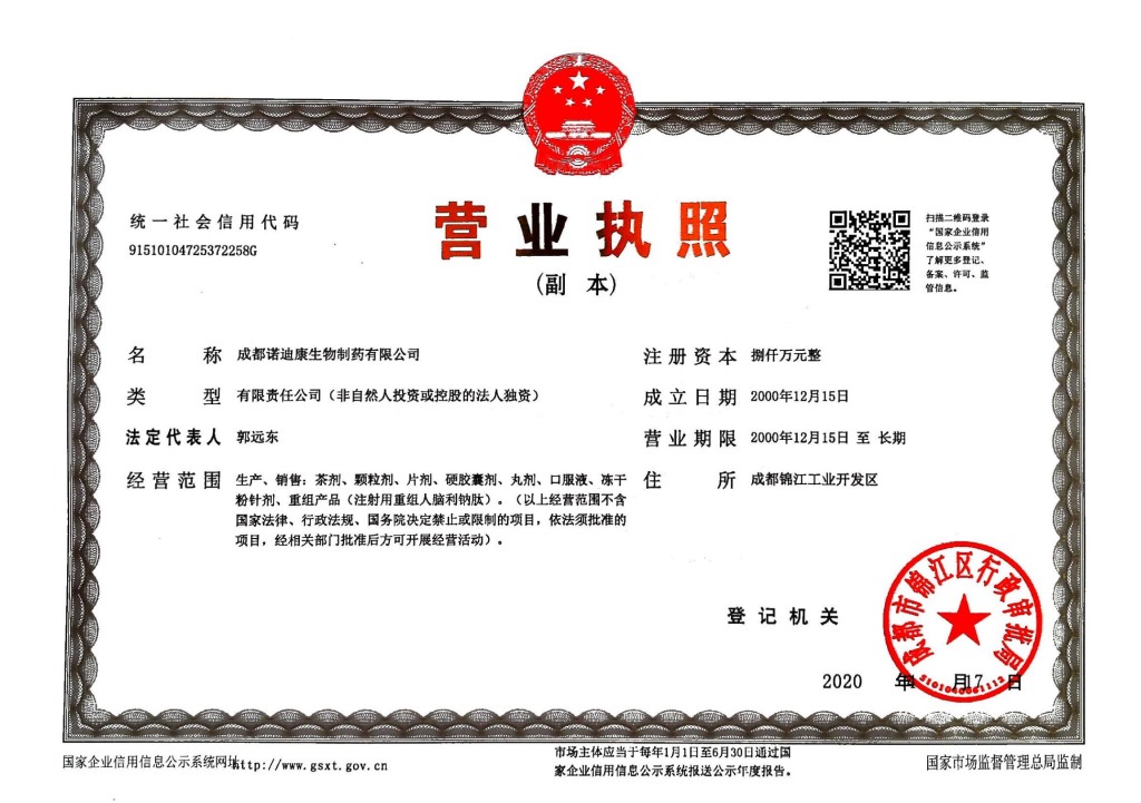 成都諾迪康生物制藥有限公司始建于2000年12月,注冊(cè)資本8000萬元,系西藏諾迪康藥業(yè)股份有限公司(股票簡(jiǎn)稱: 西藏藥業(yè),股票代碼:600211)全資子公司,位于成都市錦江工業(yè)園內(nèi),是最早批進(jìn)入錦江工業(yè)園區(qū)的企業(yè)之一,屬于四川省及成都市現(xiàn)階段重點(diǎn)培育和發(fā)展的七大戰(zhàn)略性新興產(chǎn)業(yè)之一。公司是西藏藥業(yè)旗下生物藥品(重組蛋白)的研發(fā)生產(chǎn)基地,國(guó)家一類基因工程藥物“注射用重組人腦利鈉肽”的產(chǎn)業(yè)化生產(chǎn)基地,擁有原核表達(dá)系統(tǒng)(大腸桿菌)基因工程規(guī)?;a(chǎn)平臺(tái)(基因車間、凍干車間)。